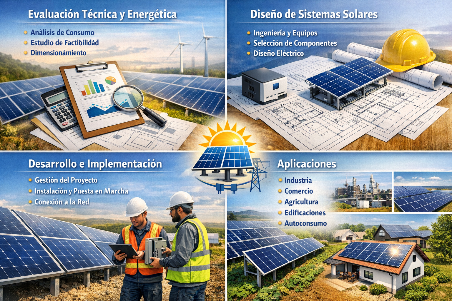 Nuestro servicio integra capacidades de ingeniería eléctrica, diseño de sistemas fotovoltaicos y gestión integral de proyectos energéticos, abarcando desde la evaluación inicial y estudios de factibilidad hasta la implementación y puesta en servicio de las instalaciones.